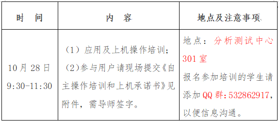 为更好地满足广大师生的测试需求,分析测试中心测试技术研究与推广教育分室将于2025年10月28日在分析测试中心301智慧培训与共享空间举办组织工作台仪器应用及上机操作培训。