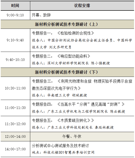 内部工作研讨:广东工业大学科技北楼分析测试中心301