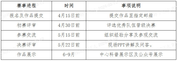 2.赛制说明:大赛设置初赛作品评选和决赛展示答辩两个环节。初赛阶段通过提交图文类及视频类作品,中心组织相关领域专家进行函评。决赛阶段以PPT讲解及答辩形式进行,中心组织相关领域专家进行现场评审及提问。即7分钟现场展示(需包含设备原理、检测技术与方法、结论与科普价值)及3分钟评委提问。
